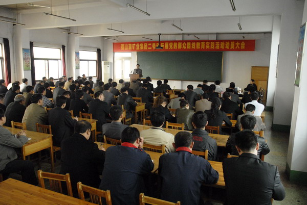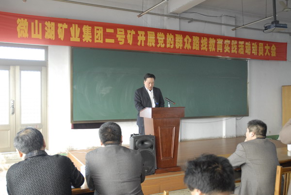 仲珺作了动员讲话。他说,要明确开展党的群众路线教育实践活动的重要性和必要性,并对二号矿今后的教育实践活动进行全面部署,对本矿党员干部中存在的问题进行了深刻剖析。坚决贯彻整风精神,坚持领导带头,层层示范,坚持教育与实践并重,坚持开展批评和自我批评,坚持求真务实,讲求实效,确保不搞形式、不走过场。进一步突出作风建设,以为民务实清廉为主要内容,坚决抵制"形式主义、官僚主义、享乐主义和奢靡之风"四风突出问题,着力解决职工群众反映强烈的突出问题,提高本矿干部党员做好职工群众工作的能力,密切党群干群关系。塑造提升党员干部在职工群众中的形象,夯实基层基础,为推动本矿科学发展、健康发展提供坚强的政治保证。