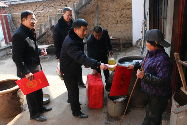 2月1日是农历腊月二十三,民间称为过小年。当日,泗河煤矿精准扶贫小组成员,将价值近4500元的钱物交到鲁桥镇圈里村9户贫困群众家中,把党和政府的关怀送到他们心坎上。