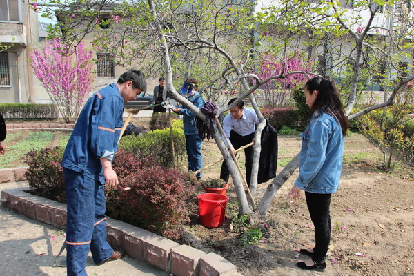 近日,在矿党总支书记、矿长韦连波带领下,一号井矿级领导班子、党员和各科室工作人员携带工具,对办公楼前空地进行集中清理,栽种蔬菜、水果等果苗,既绿化了环境又降低了过去购置维护绿化用花草树木的开支。
