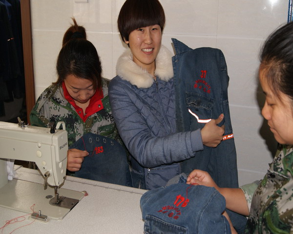 由于工作服在清洗时栓牌容易掉落,职工取衣服时不好对号,而且掉落的栓牌绞入洗衣机内不容易清理,导致机器无法正常运转。针对这一问题,洗衣女工们为节省开支,决定利用工作间隙手工刺绣工作服编号。年青的女工们从未干过刺绣这一精细的手工活,为了做好、做细,女工用手机下载视频教材跟着学,刚开始常常被针刺破手指,时间长了,都练就了不靠刺绣工具也能飞针走线的绝活。