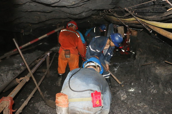 为把这项任务完成好,泗河煤矿副总以上领导明确分工,各带一组,现场给职工指定区域,划分范围,布置任务,提出要求,监督检查,带头实干。在上千米长的巷道内,各带班领导边安排边劳动,脚不停步,手不释闲,既是“指挥员”,又是“战斗员”,还是“巡视员”。从矸石浮煤清理,到沿途提升运输、电缆吊挂、物料摆放、地滚子安装、一坡三挡使用、水仓清理、煤壁、顶板管理,人员操作过程中的安全注意事项等每个细节一丝不苟,精细到位。劳动中每位干部职工的工作服全被汗水浸透、被身体暖干,如此循环,时间长达10多个小时。尽心尽力,挥汗如雨,毫无怨言,积极乐观,干部职工用无言的行动阐明了“遵章守纪、用心工作、乐于奉献”的企业核心价值观内涵。职工感叹:有务实创新的领导班子,爱岗敬业的职工队伍,雷厉风行的工作作风,不怕困难的冲天干劲,泗河煤矿全面建设必将扎实推进,不断进步。