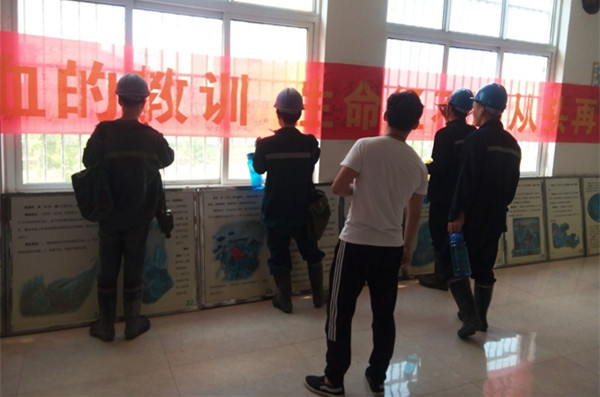 为强化干部职工安全生产意识,永胜煤矿精心组织开展了系列安全警示教育活动。6月6日,举办了“牢记血的事故,生命不能从头再来”主题的事故图片展,展出了集团公司多年来发生的各类安全生产事故。通过图片展,让职工切实感受到,事故其实离我们并不遥远,违章是灾祸的根源。广大职工认真观看了事故经过,惋惜不已,纷纷表示在接下来的工作中一定会遵章守规,规范操作,牢记教训,不让悲剧再次上演。观看后,大家共同在宣传条幅上签名,郑重作出安全承诺。