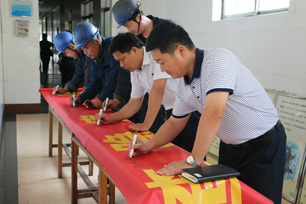 全矿干部职工在大红条幅上郑重的签下了自己的名字,签下一份安全生产的庄严承诺,并将签名横幅悬挂于井口,让职工们每次下井时都能清楚的看到自己的签名、想到自己的承诺,时刻铭记安全生产的重要性。