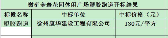 招标结果:微矿金泰花园休闲广场塑胶跑道