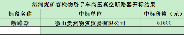 招标结果:泗河煤矿春检物资手车高压真空断路器