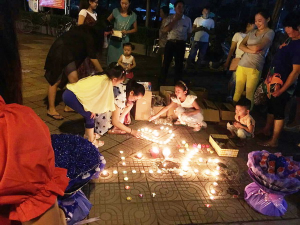 活动分两组分别在县城人流密集区举行。活动现场,用琳琅满目的玫瑰花情人蜡、心形蜡、各种颜色的茶蜡等拼出“爱”的符号,透过缕缕烛光把浓浓的爱意传递给路上的行人,吸引的路人纷纷驻足观看。其中,色泽鲜艳的茶蜡、做工精致的玫瑰花情人蜡,备受市民特别是青年人的喜爱,加之销售人员对每一种蜡烛的精彩诠释,众多行人纷纷停下来询价购买,现场成就了一对又一对的“七夕”佳话。