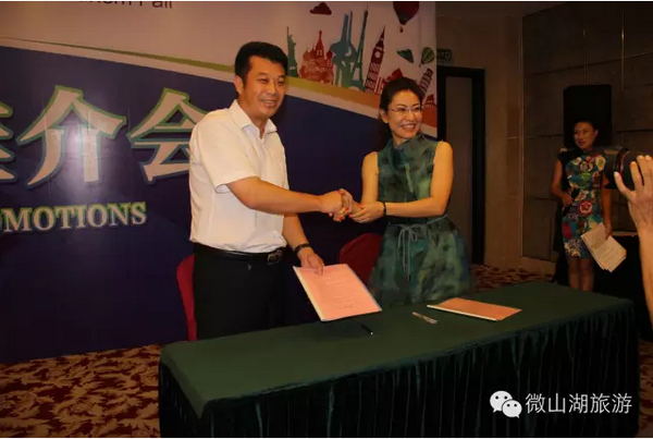 会上,微山湖国家湿地景区经理崔玉涛分别同山东华纳国际旅行社、威海广播电视台玩转天下旅行梦工厂签订了战略合作协议。
