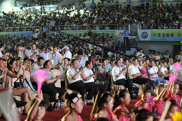 芦苇摇曳,荷花飘香。7月28日,2016年第二十三届微山湖荷花节暨第五届湿地节在微山县体育中心体育馆隆重开幕。