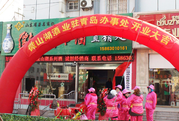 12月17日,微山湖酒驻青岛办事处隆重开业,现场花团锦簇,彩旗飘飘,锣鼓喧天,佳宾云集,洋溢着欢声笑语。