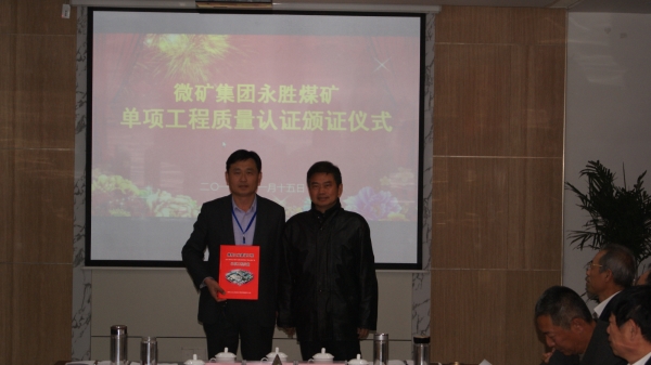 专家组分矿建、土建、机电安装、综合四个专业组,对单位工程实体质量、技术资料和工程建设责任主体质量行为抽检核验,并进行了专家质询。经过两天现场核验、资料审查,永胜煤矿顺利通过质量认证,被评为合格工程。省煤矿工程质量监督中心站向永胜煤矿颁发了矿井单项工程质量认证证书。