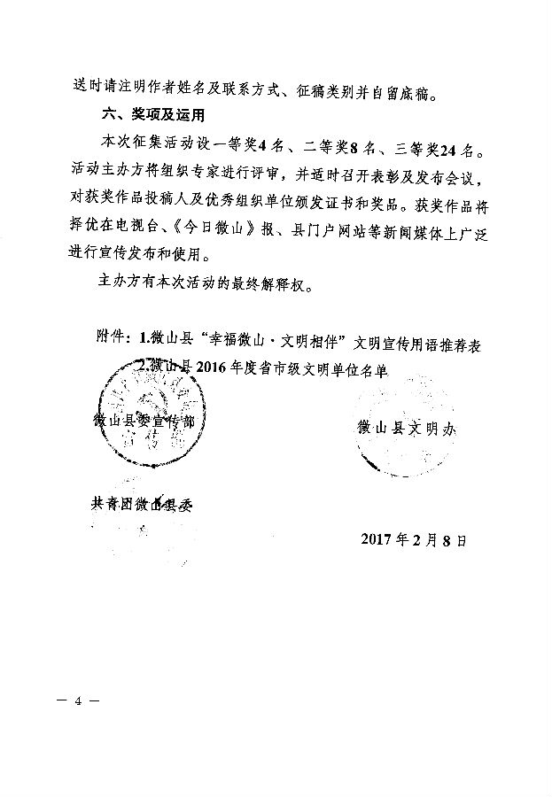在全县开展“幸福微山 文明相伴”文明宣传用语征集活动的通知