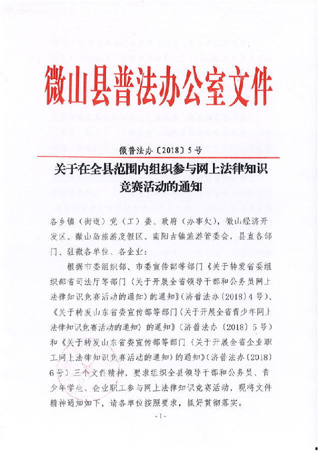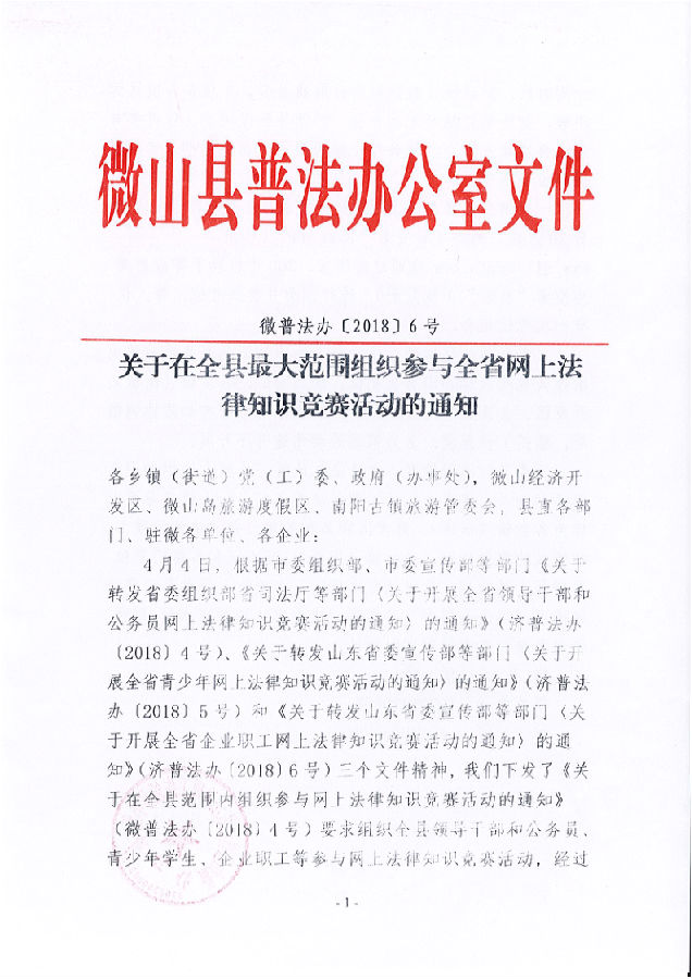 《关于在全县最大范围组织参与全省网上法律知识竞赛活动》的通知